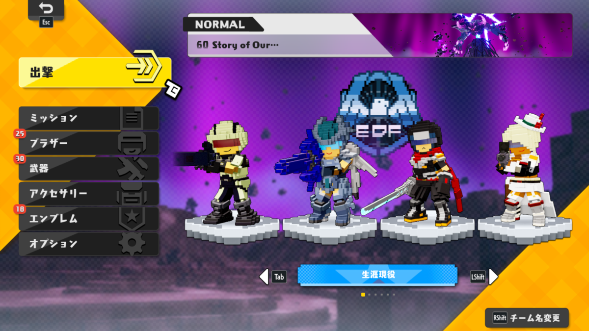 良い所はグラフィックがマイルドになってるから、敵が気持ち悪くなくて遊びやすいです。キャラがたくさん使えるからみんなが過去にやってたEDFのキャラを懐かしむことが出来ます。