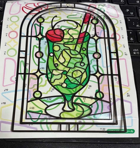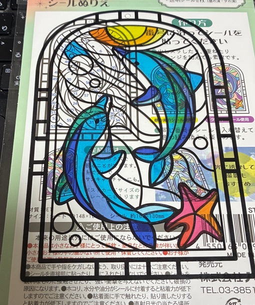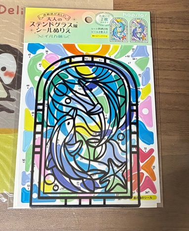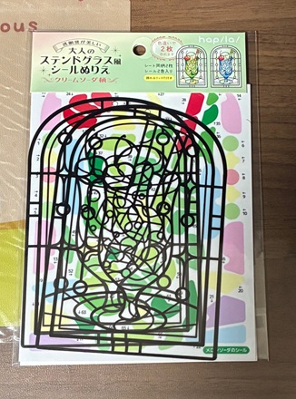 こちらは「大人のステンドグラス風シールぬりえ」100均のセリアの商品です。セリアによっても、売ってるお店と売ってないお店を確認したので、セリアだからって売ってるとは限らないかもしれません。色違いで2セット分が入ってます。